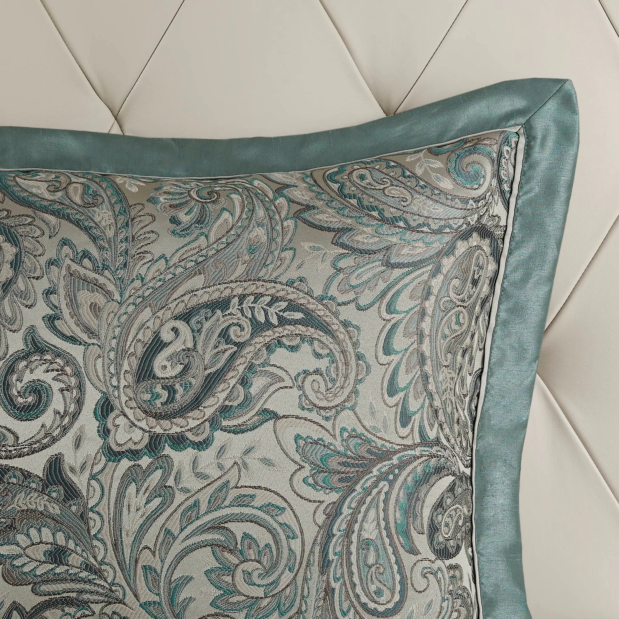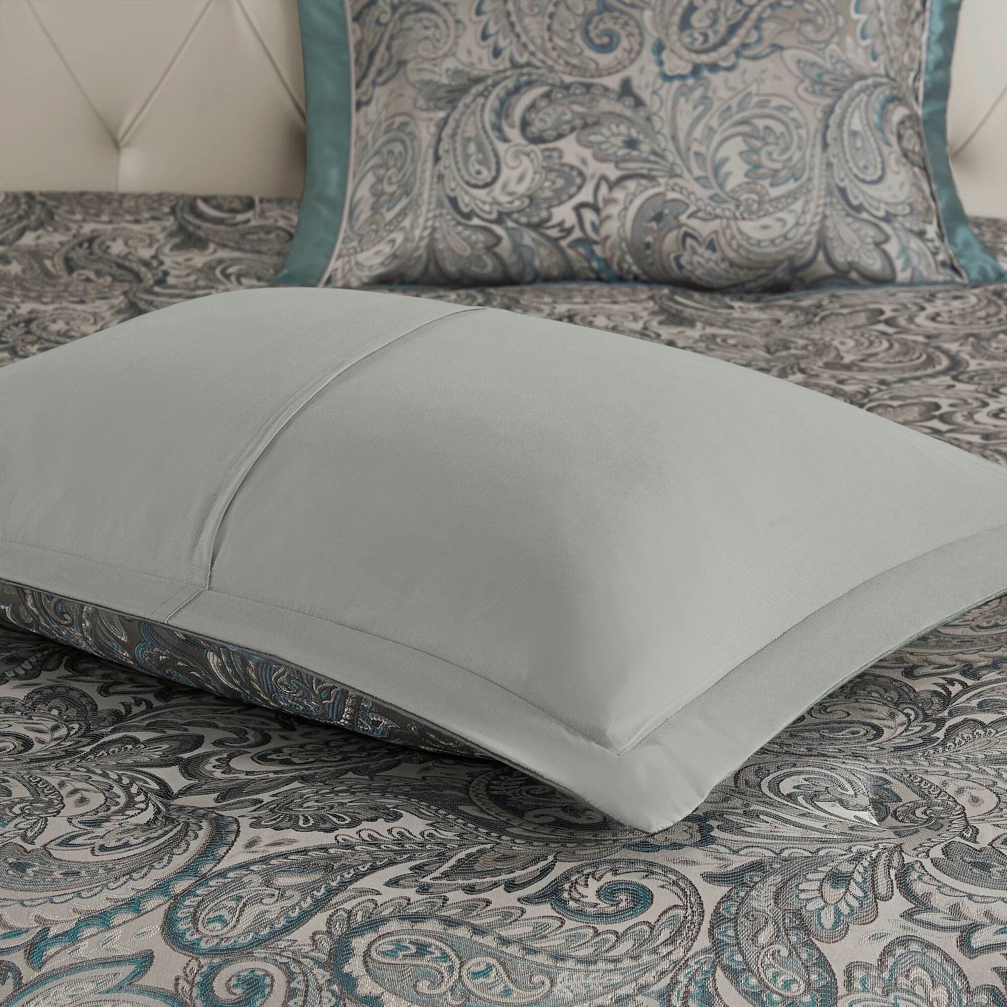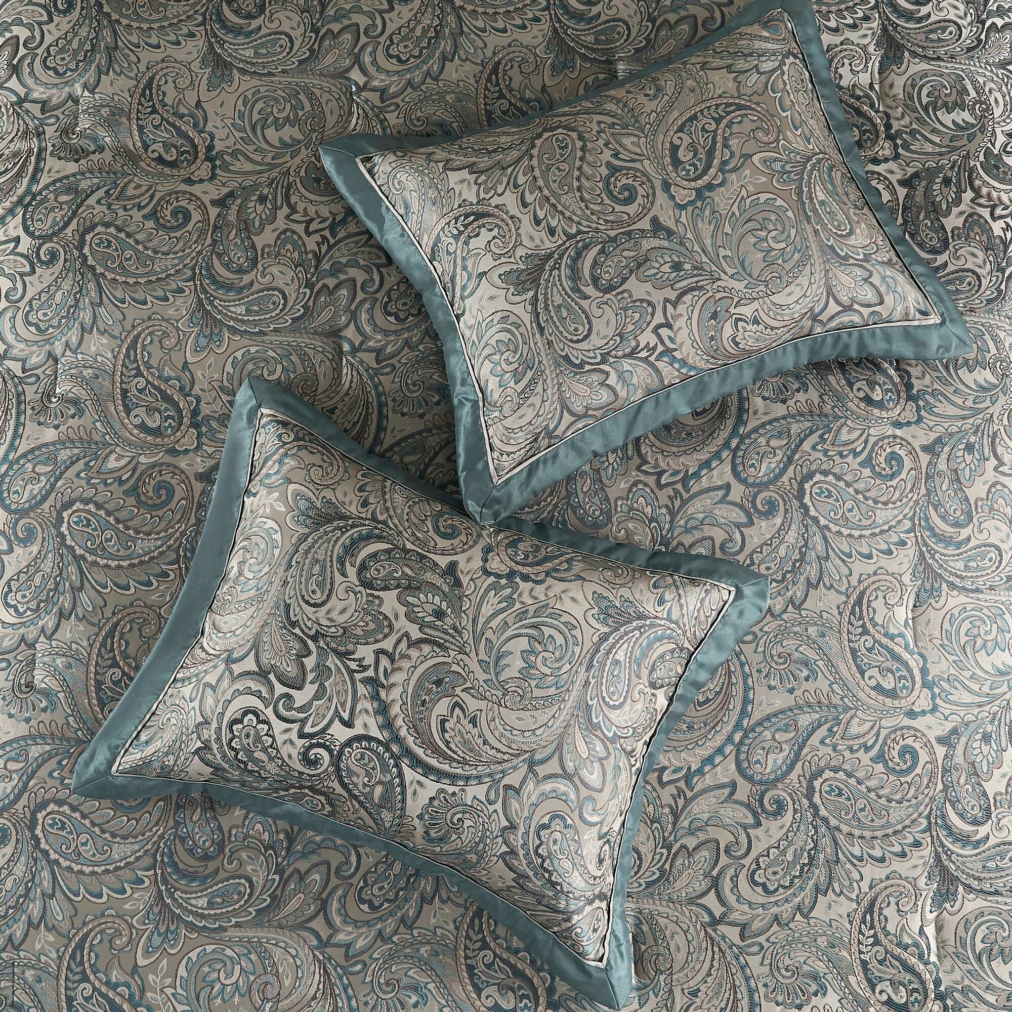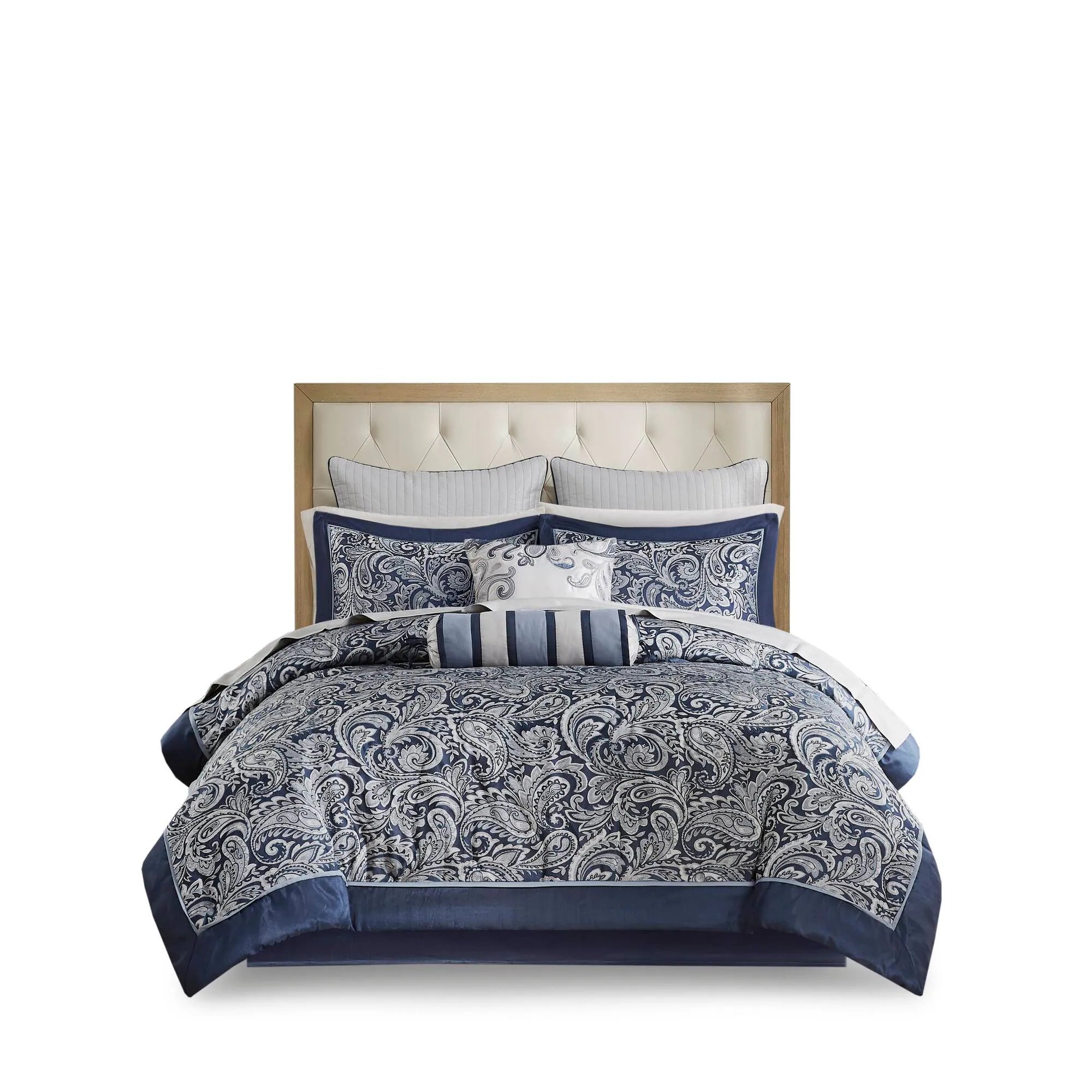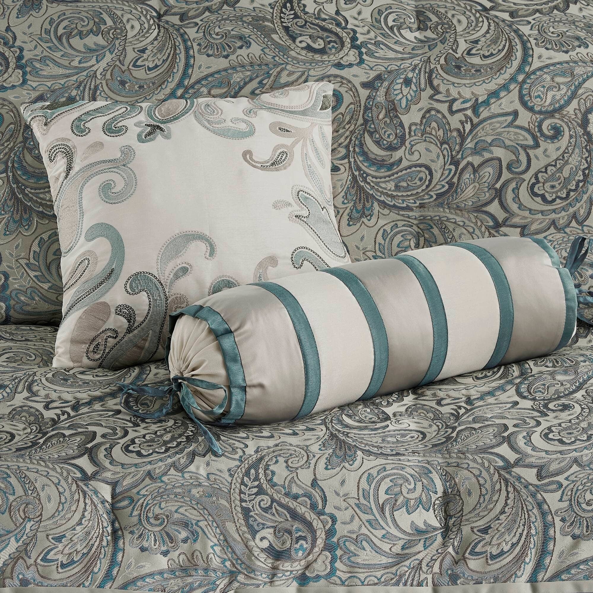 This stunning traditional style comforter with cotton sheet set features a jacquard weave with a modern paisley pattern.