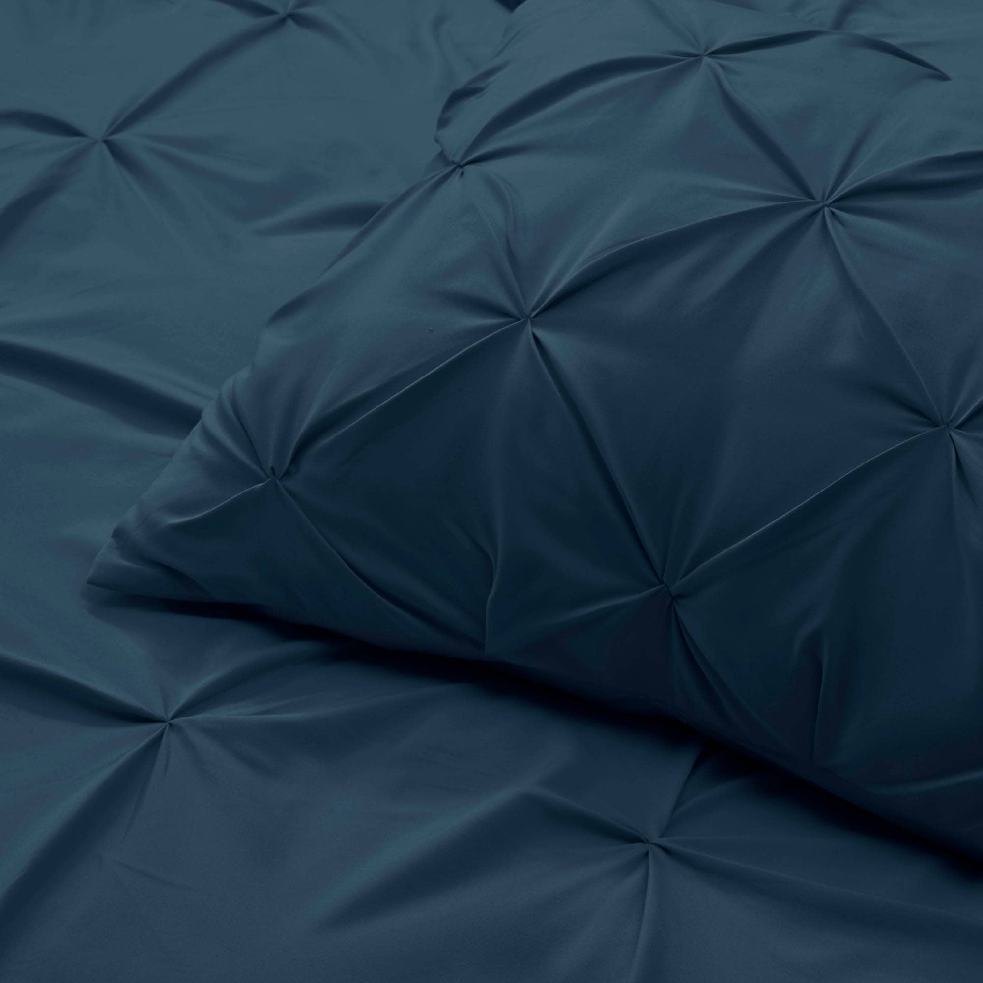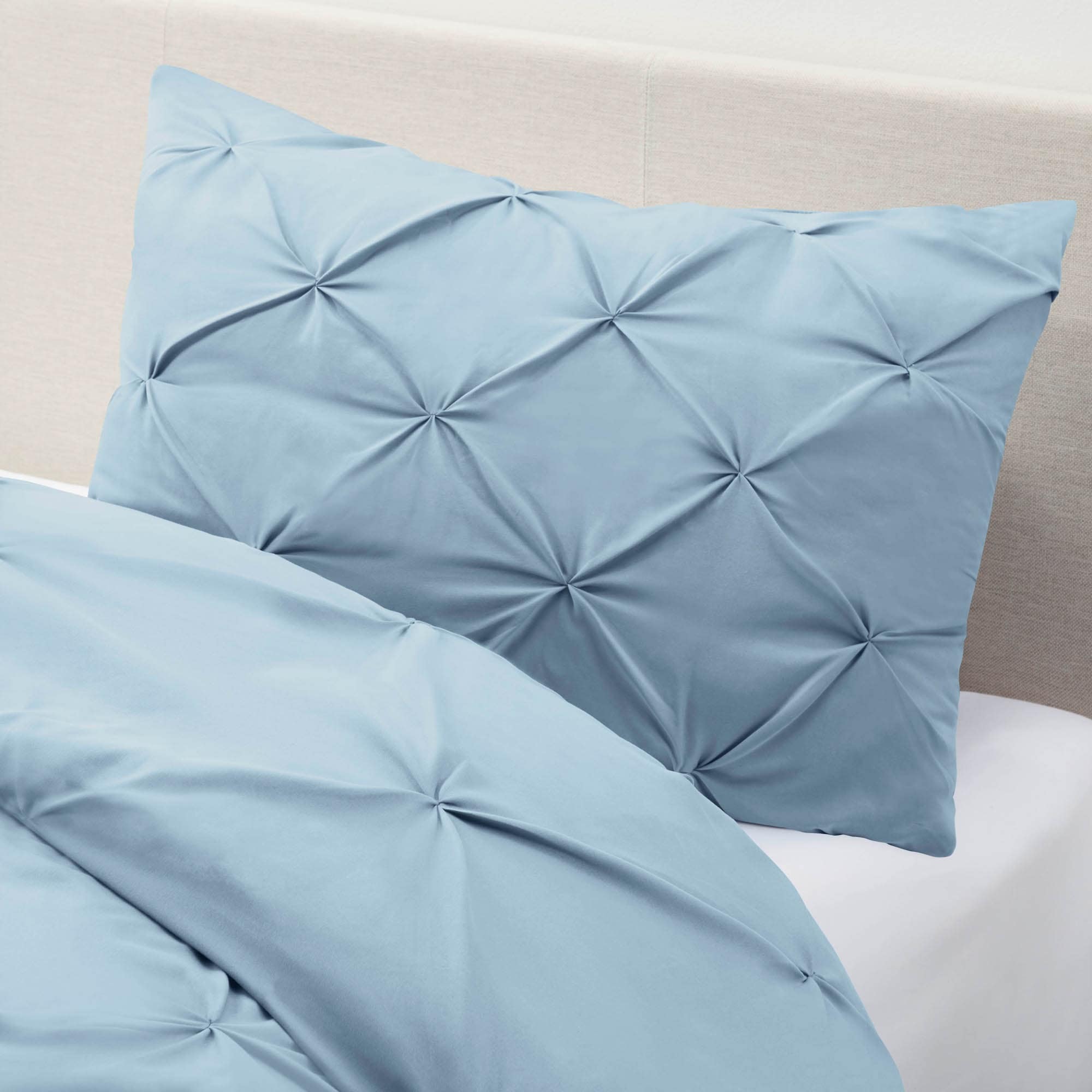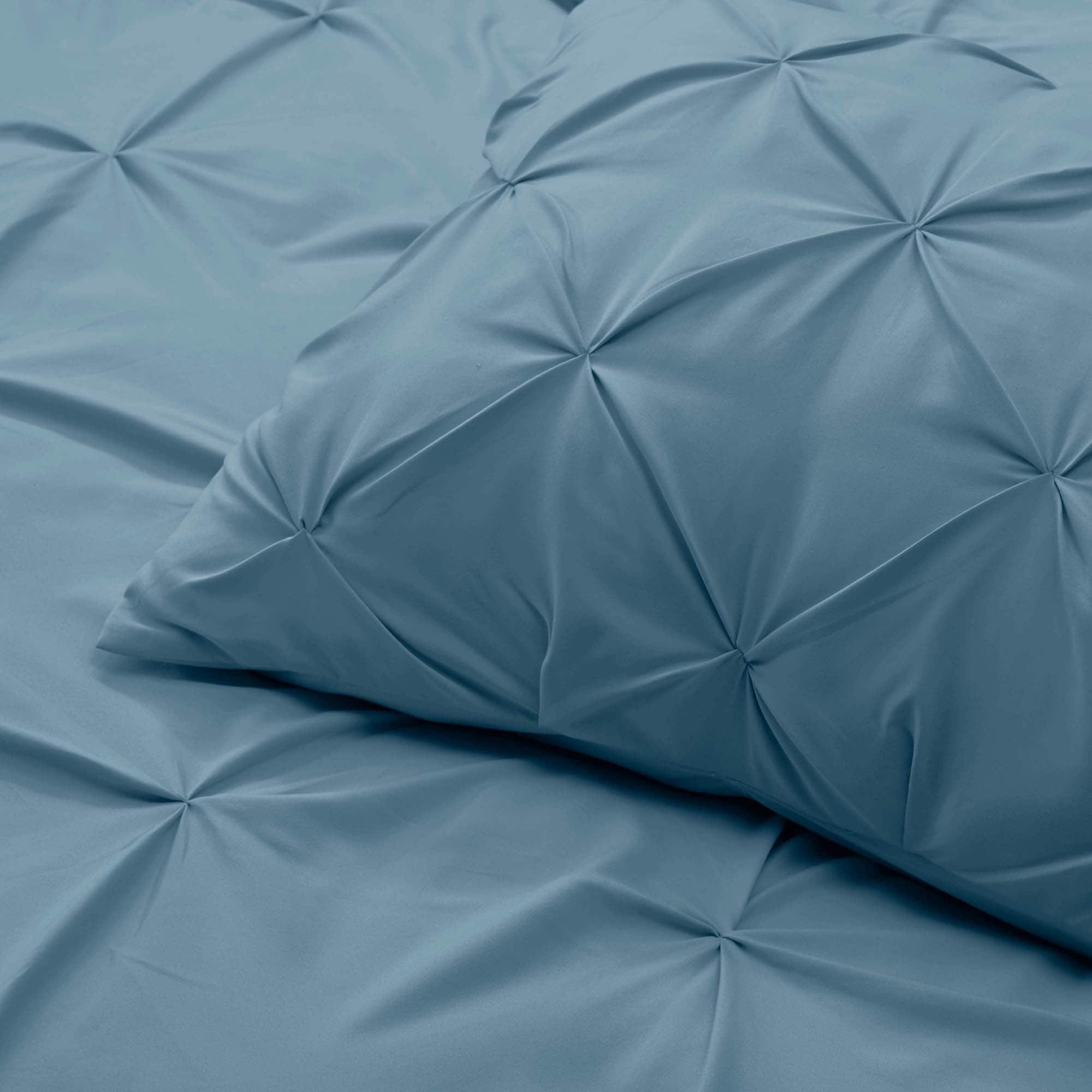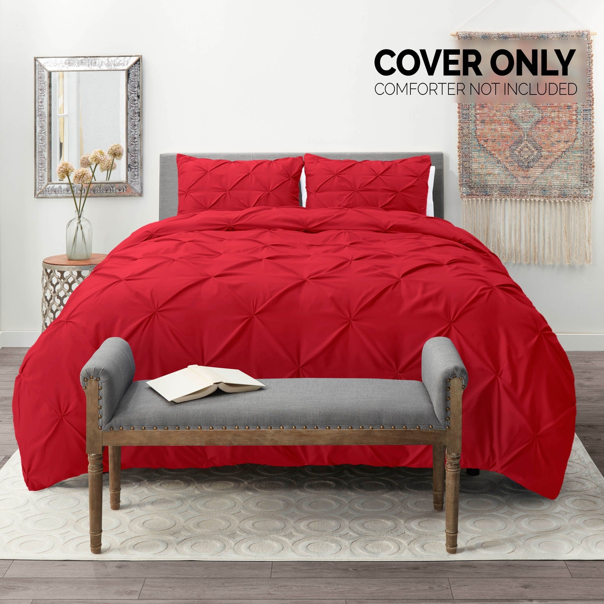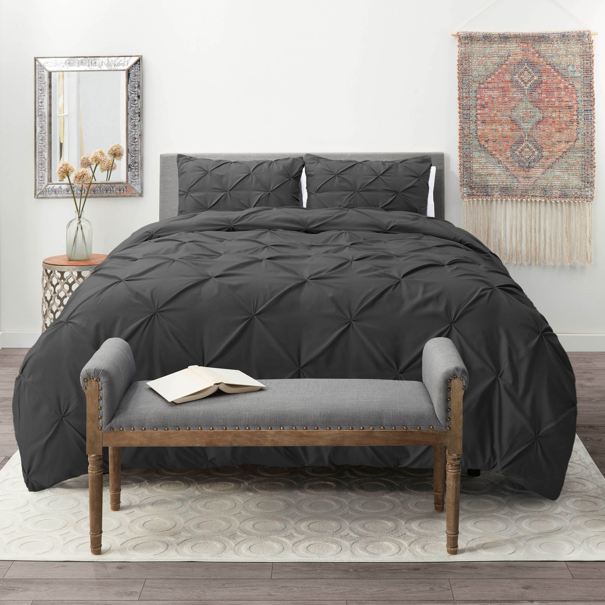 Upgrade your bedroom with the Nestl Pinch Pleat 3-piece Duvet Cover Set. The breathable and cool microfiber bedding provides a luxurious sleeping experience, thanks to its silky soft feel and tight, double-brushed weave. This set comes with one duvet cover, two pillowcases (one in twin set), and features an elegant pinch pleat design with attached ties and large button closures. It's pet-friendly and prevents dust mites, hair, and dander. Choose from a variety of colors to refresh your bedroom decor.