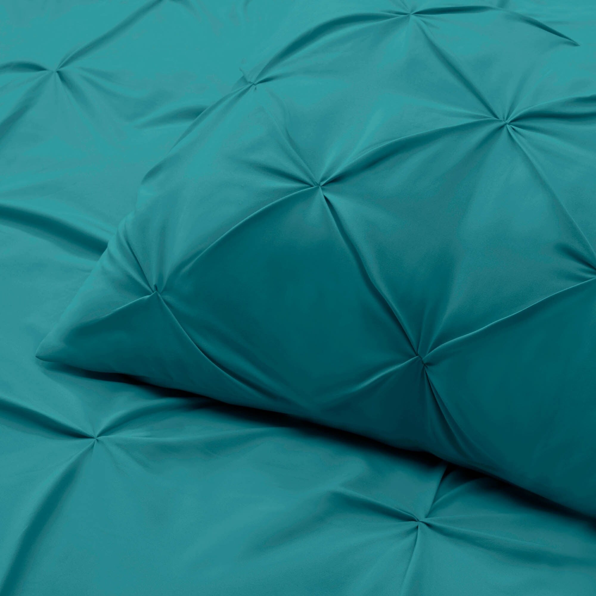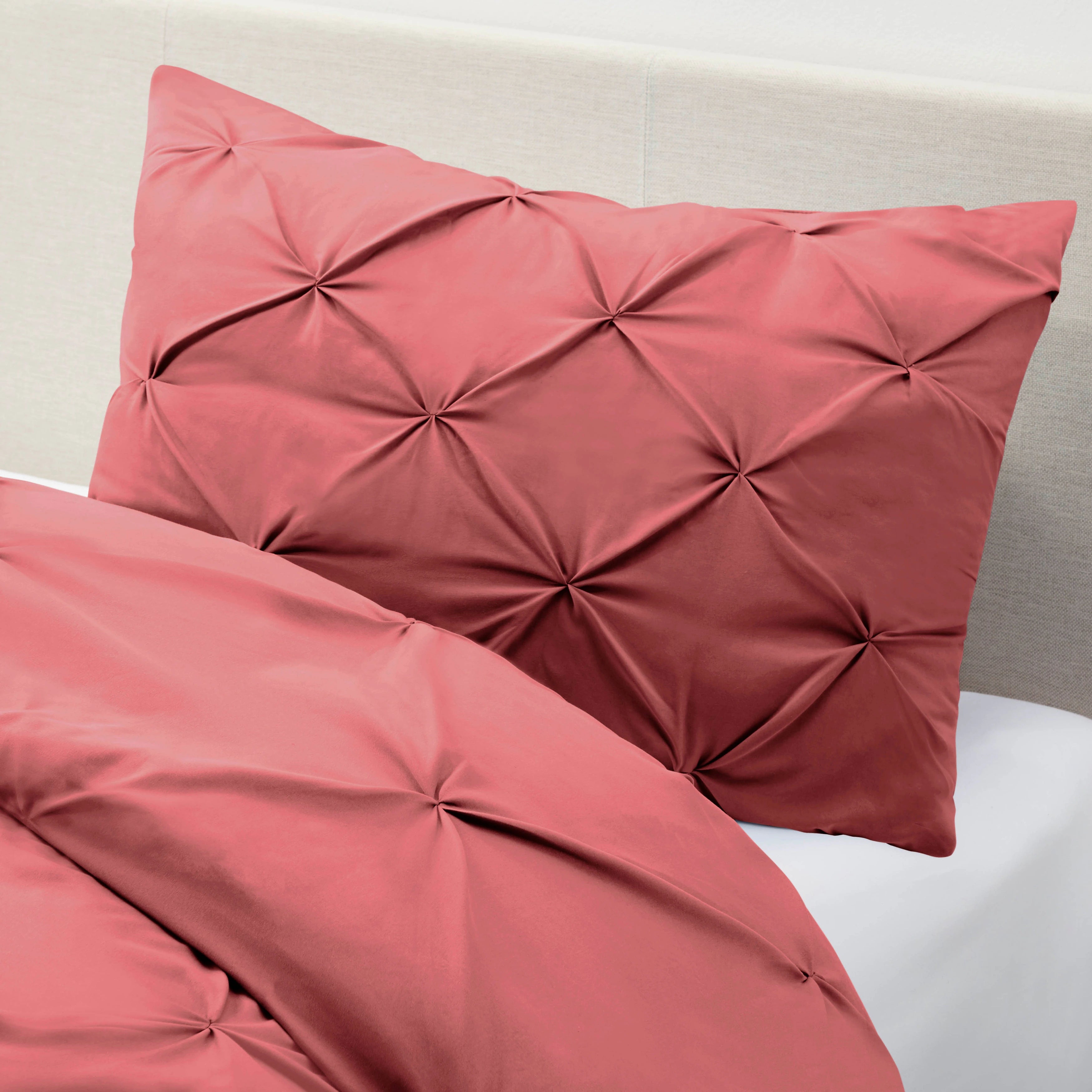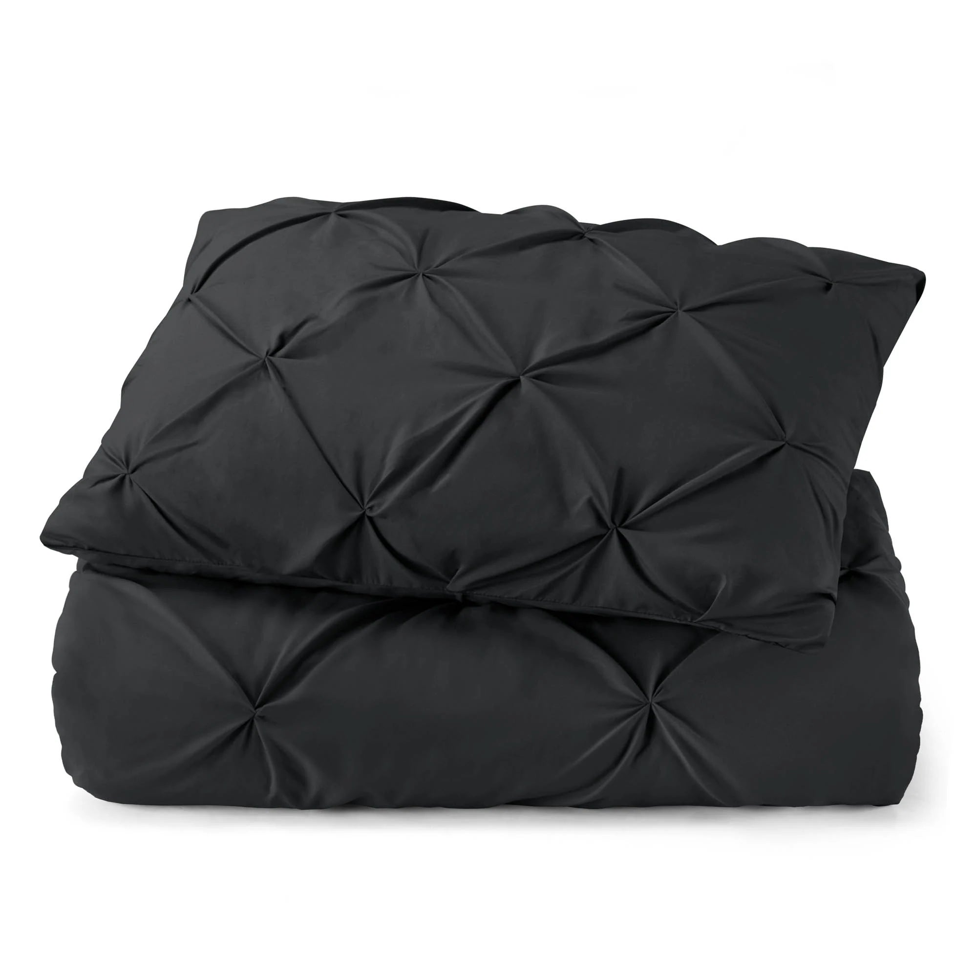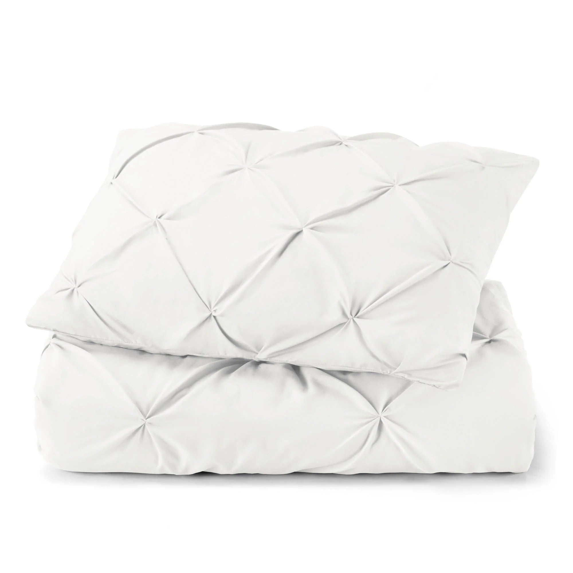 Upgrade your bedroom with the Nestl Pinch Pleat 3-piece Duvet Cover Set. The breathable and cool microfiber bedding provides a luxurious sleeping experience, thanks to its silky soft feel and tight, double-brushed weave. This set comes with one duvet cover, two pillowcases (one in twin set), and features an elegant pinch pleat design with attached ties and large button closures. It's pet-friendly and prevents dust mites, hair, and dander. Choose from a variety of colors to refresh your bedroom decor.