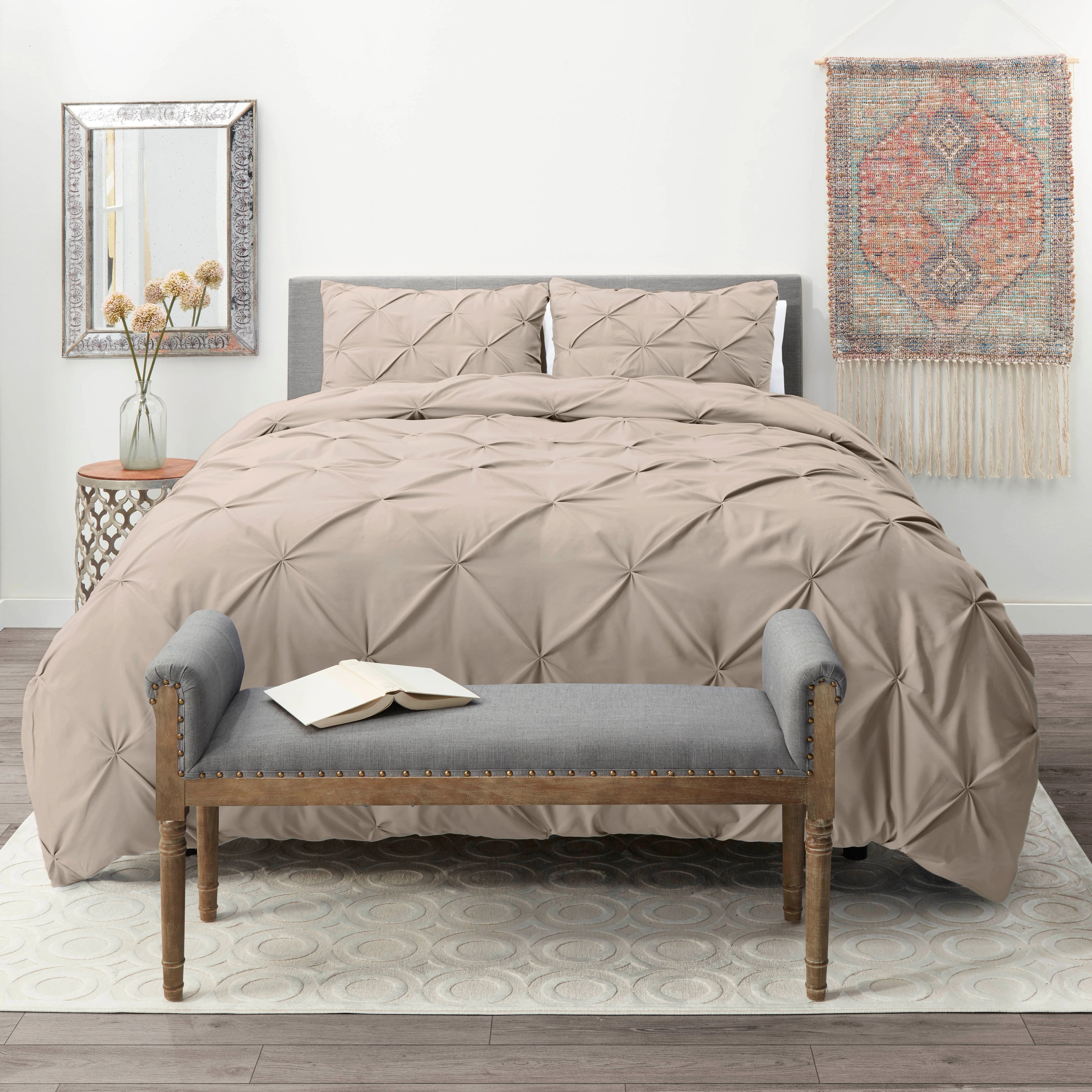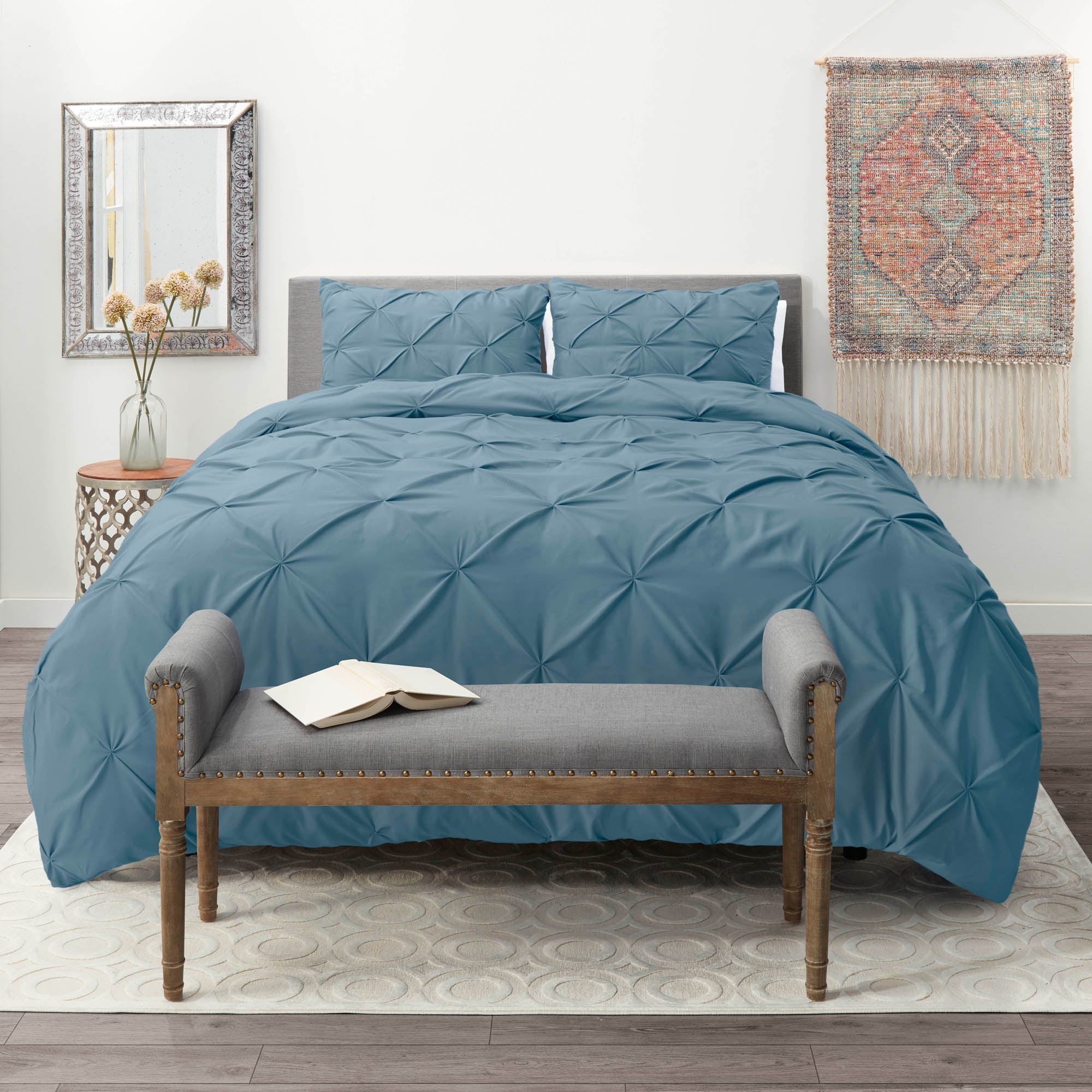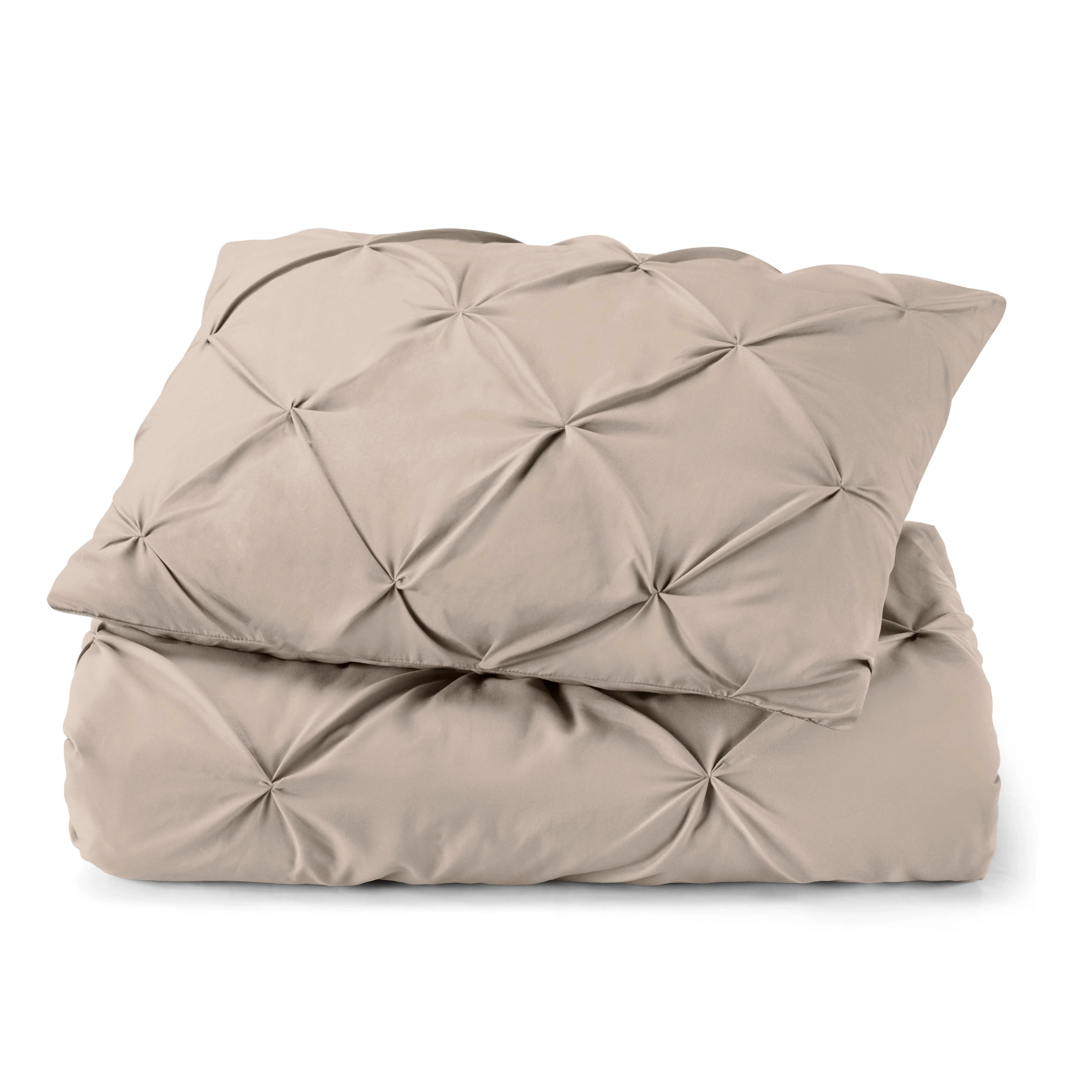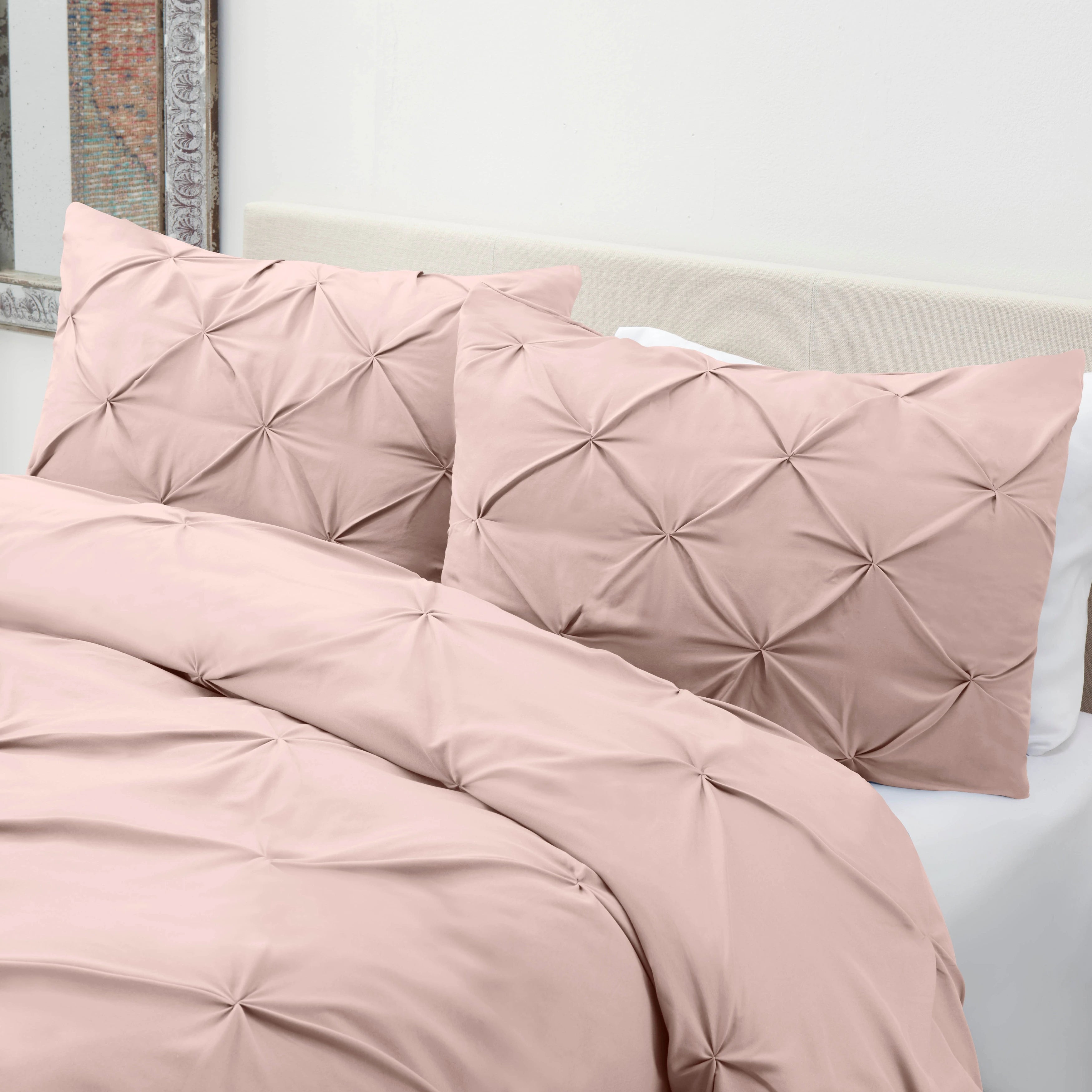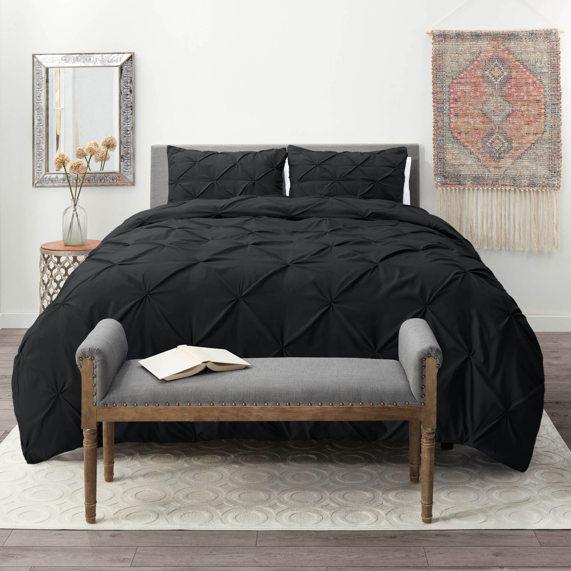 Upgrade your bedroom with the Nestl Pinch Pleat 3-piece Duvet Cover Set. The breathable and cool microfiber bedding provides a luxurious sleeping experience, thanks to its silky soft feel and tight, double-brushed weave. This set comes with one duvet cover, two pillowcases (one in twin set), and features an elegant pinch pleat design with attached ties and large button closures. It's pet-friendly and prevents dust mites, hair, and dander. Choose from a variety of colors to refresh your bedroom decor.