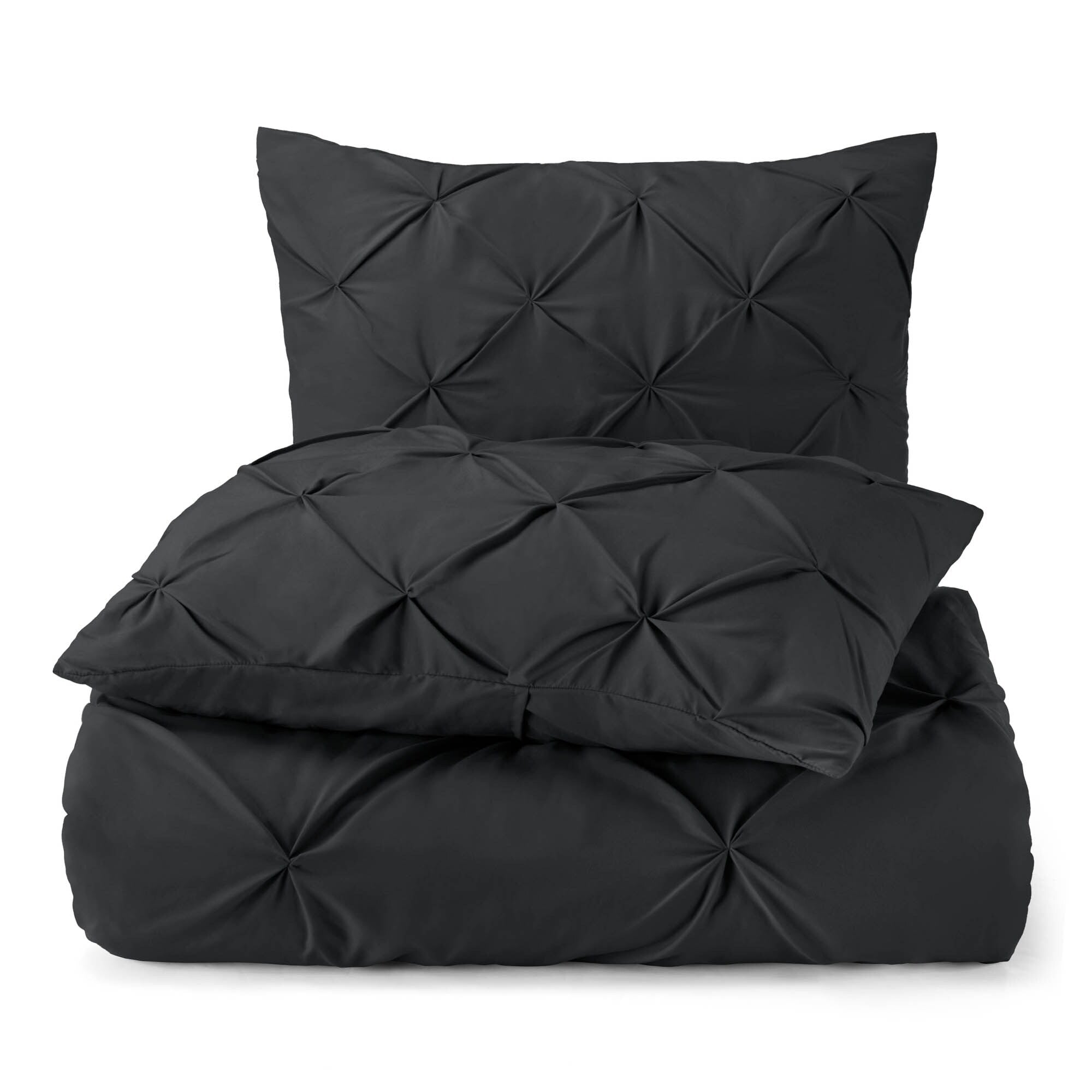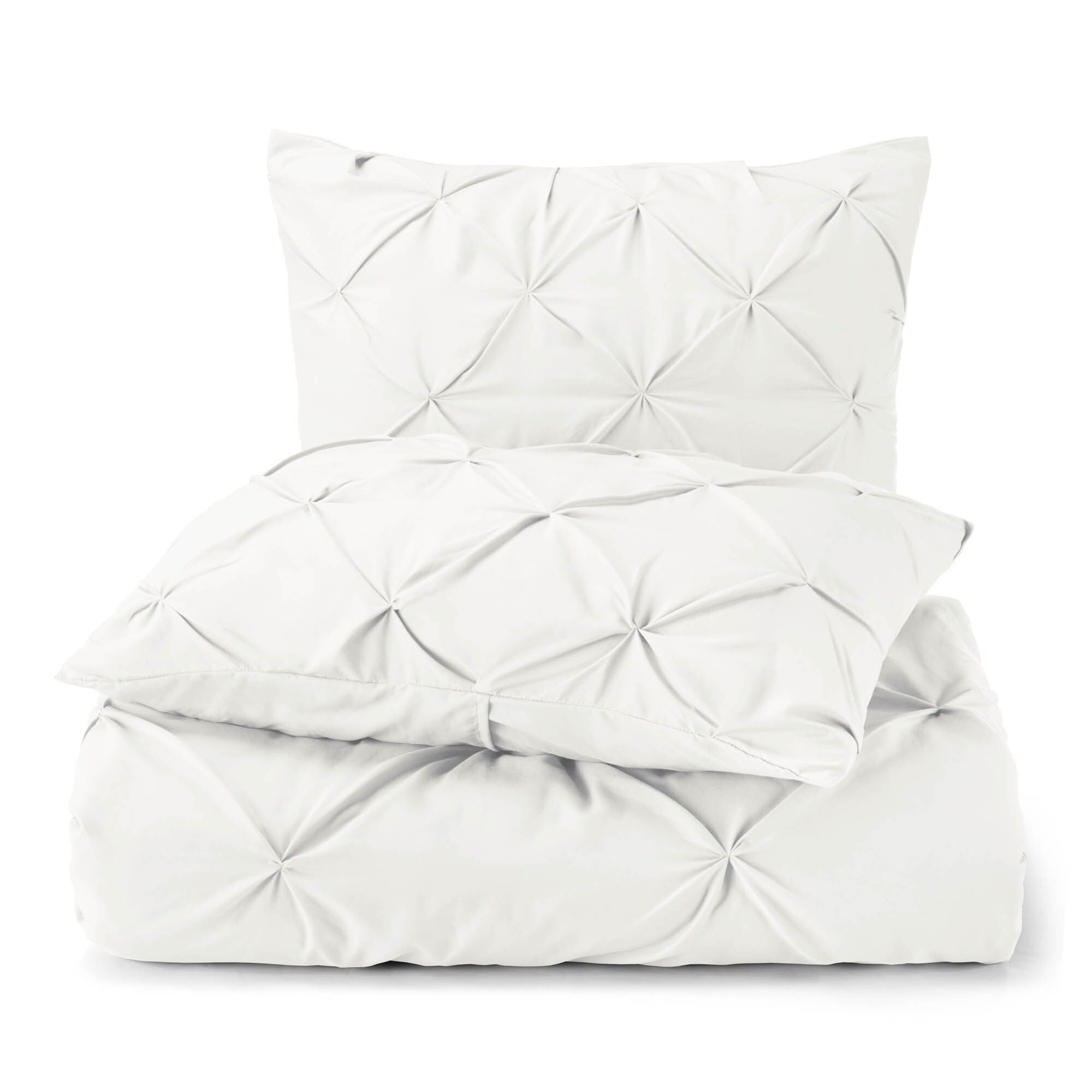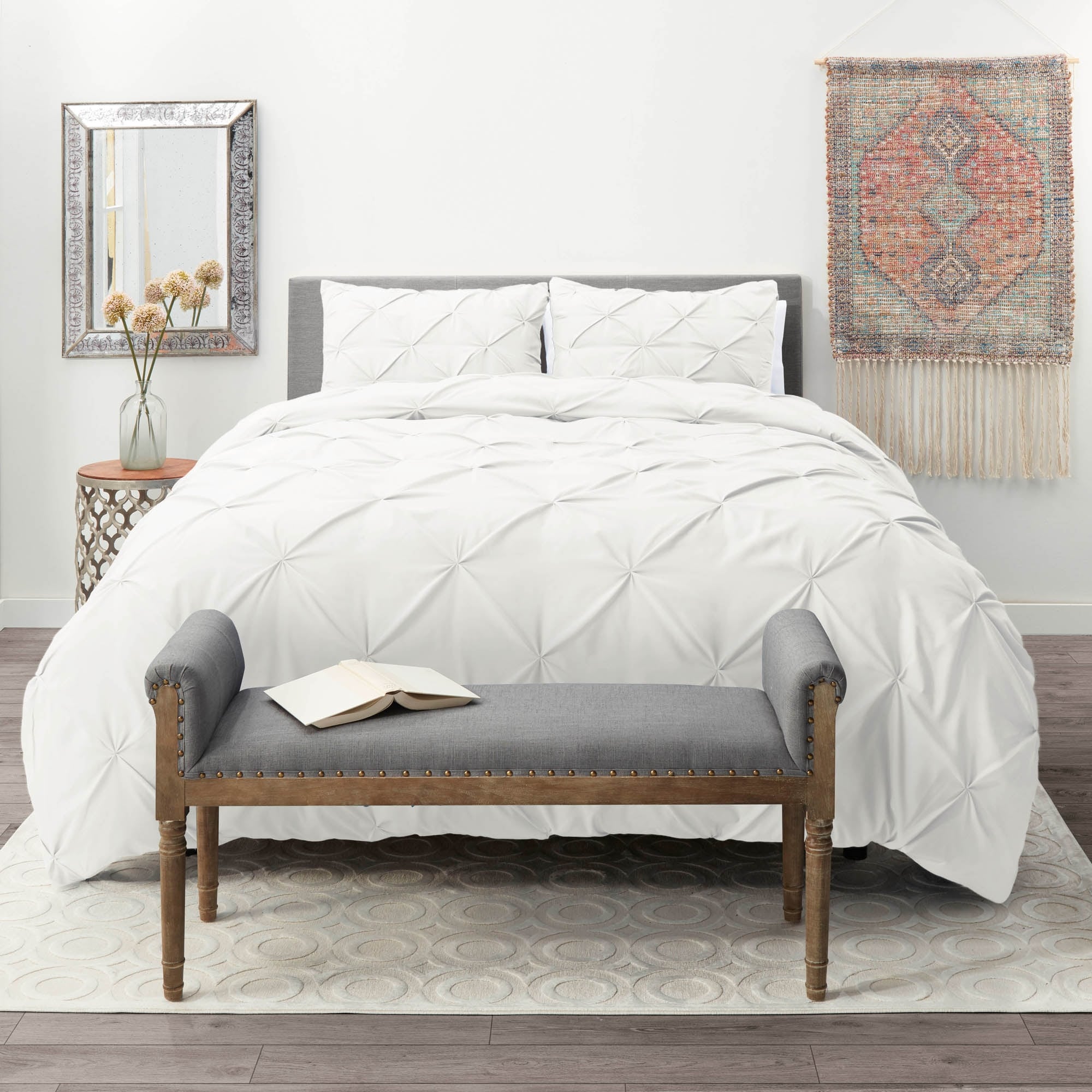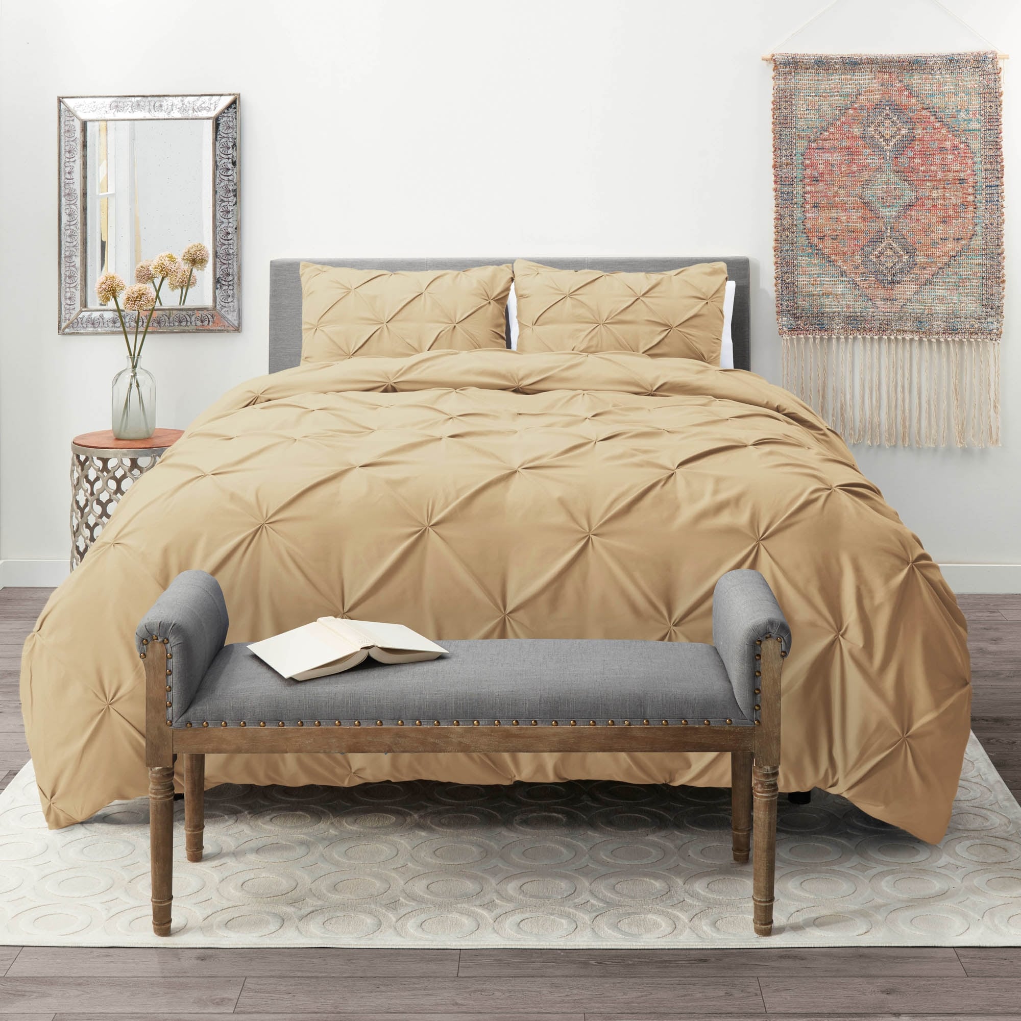 Upgrade your bedroom with the Nestl Pinch Pleat 3-piece Duvet Cover Set. The breathable and cool microfiber bedding provides a luxurious sleeping experience, thanks to its silky soft feel and tight, double-brushed weave. This set comes with one duvet cover, two pillowcases (one in twin set), and features an elegant pinch pleat design with attached ties and large button closures. It's pet-friendly and prevents dust mites, hair, and dander. Choose from a variety of colors to refresh your bedroom decor.