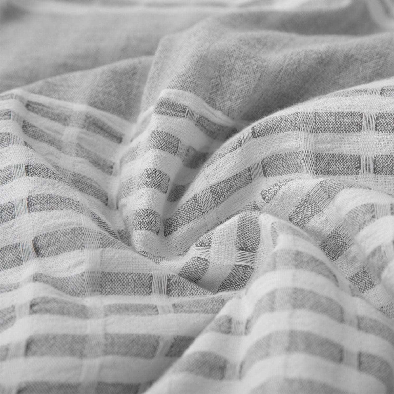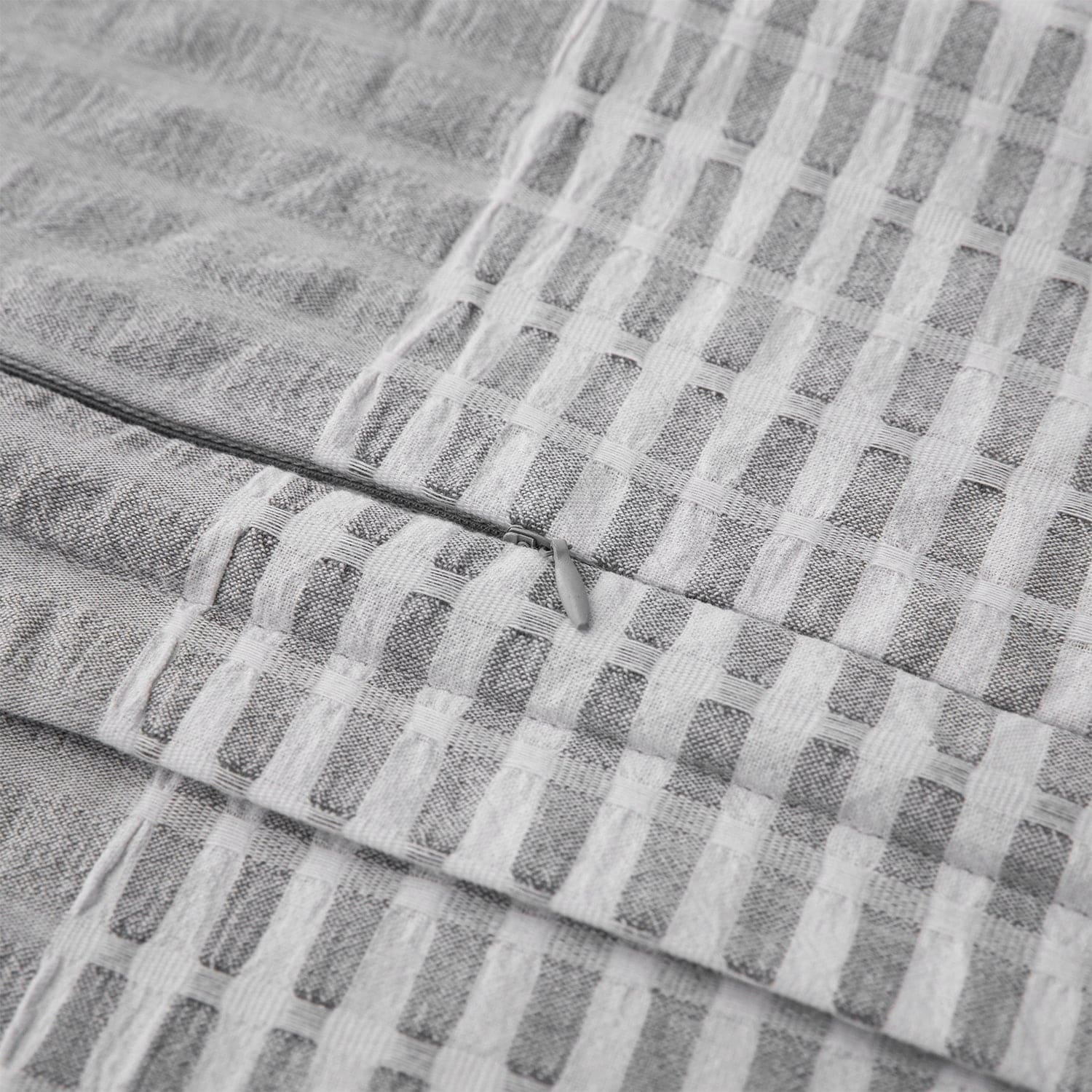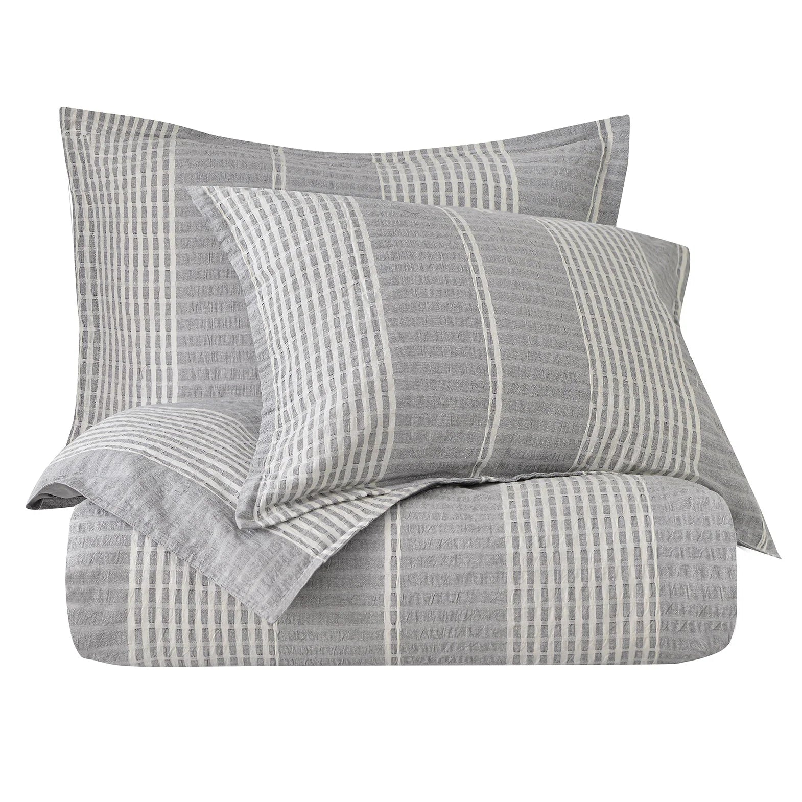 Relax and let loose in Lane's tranquil neutrals and soft seersucker pattern. Woven white-and-gray stripes run through the lightweight, breathable cotton fabric, imparting a laidback look and feel to your bedroom. Lane's versatile and classic looks work well in all homes and effortlessly delivers a cozy and relaxed coastal look when paired with crisp white linens. For even more texture, layer on our Waffle Weave blanket and shams or Pebble Creek throw blanket.